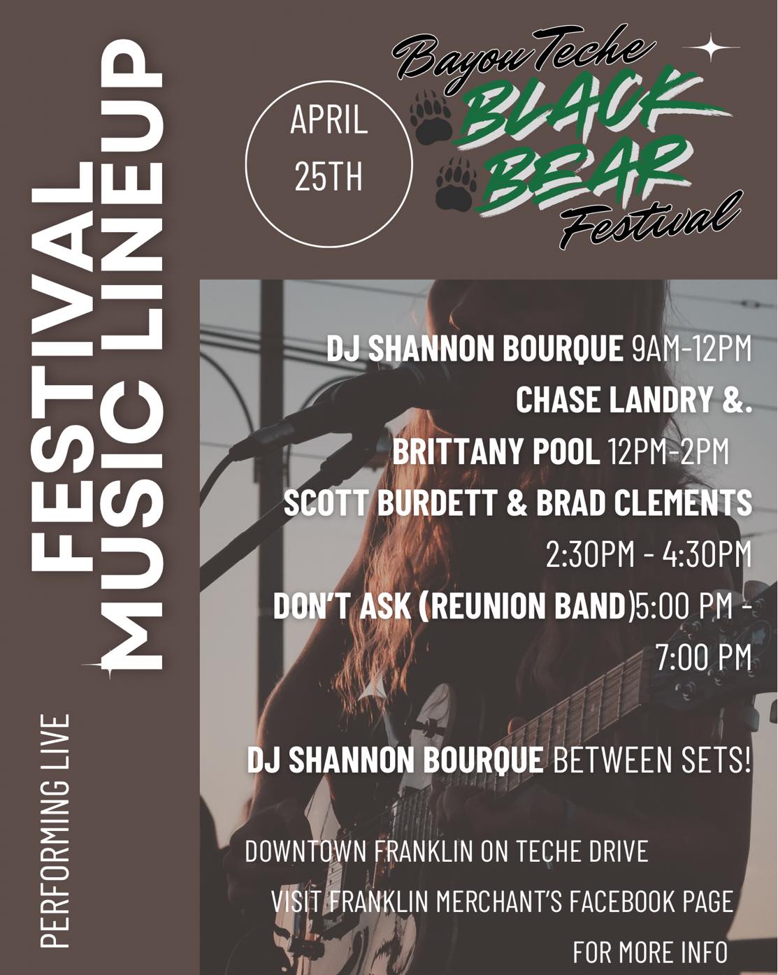 Don’t miss our newly added to the festival, Friday night LIVE MUSIC! 7pm-9pm we’ll hear Brittany Pool and her band! Our very own Chase Landry will be on drums! It’ll be a kick off party to the festival you won’t want to miss!